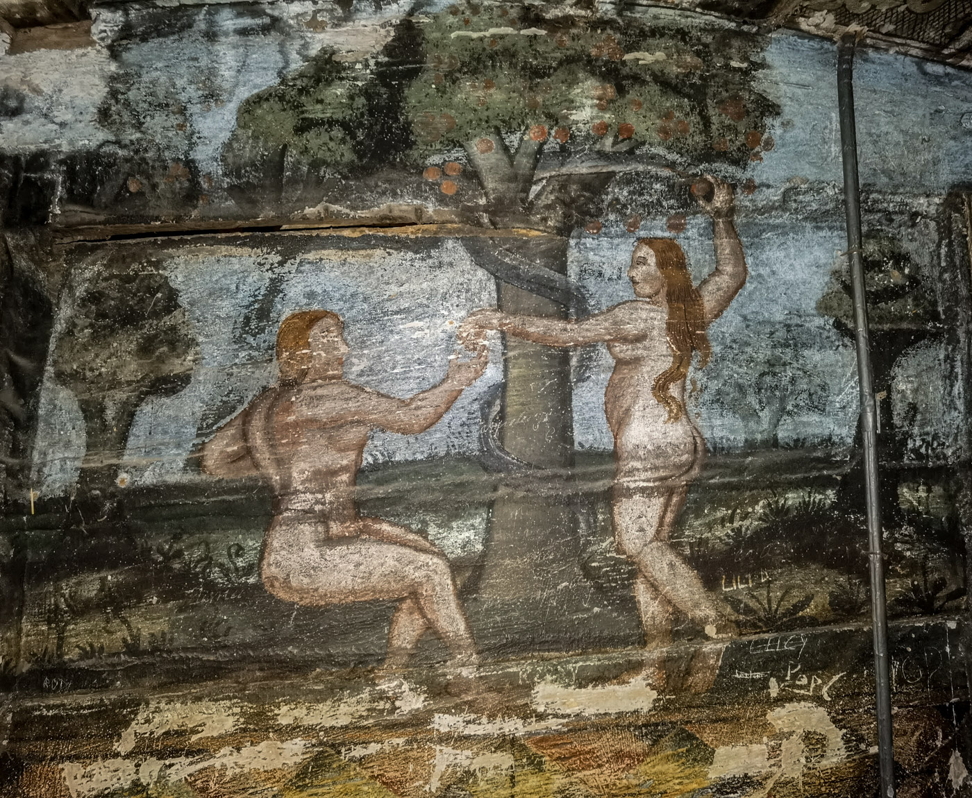 Căderea lui Adam și a Evei, fecioarele nebune, despletite, un dascăl învățând un copil