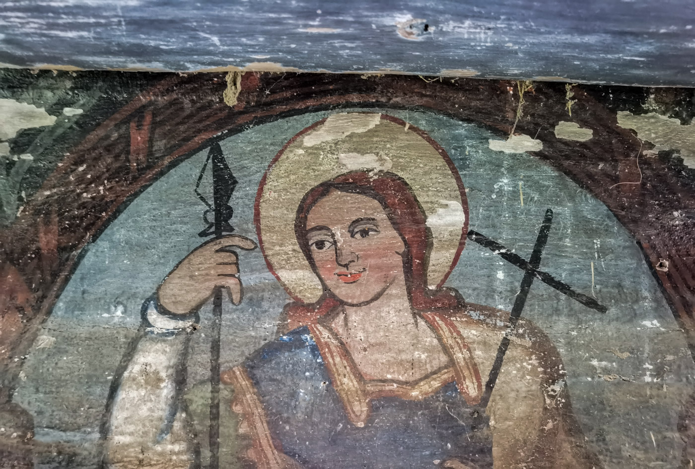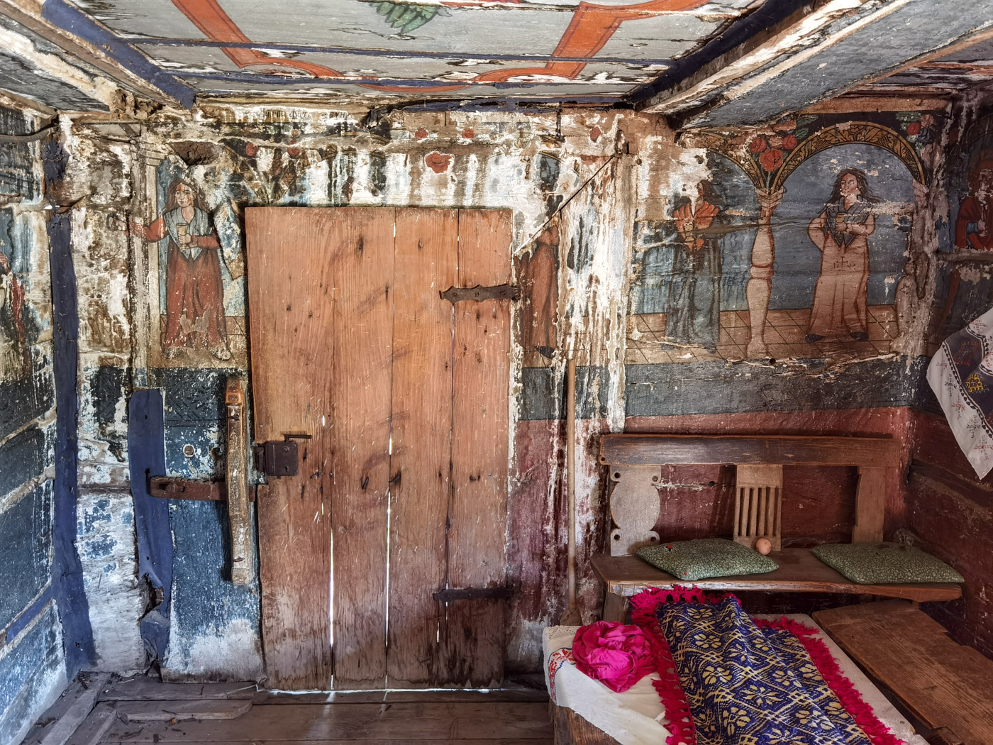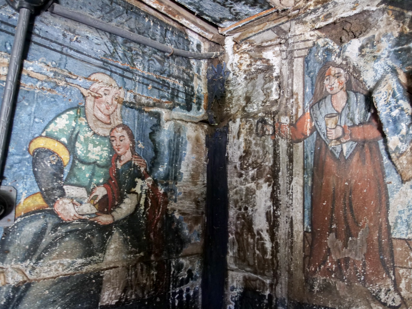 Pictura de pe pereții locașului, distrusă în mare parte, a fost executată în secolul al XIX –lea, dupa o importantă intervenție de mărire a spațiului.
