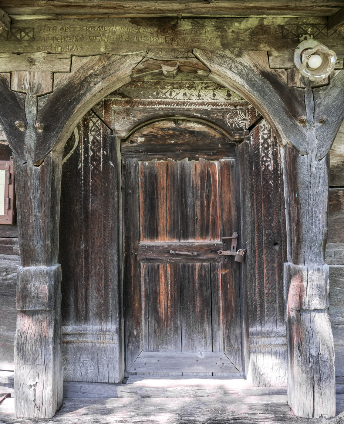 Rozeta și „frânghia” au fost alese de meșterii consemnați în inscripție și pentru decorarea ancadramentului ușii de intrare în naos.