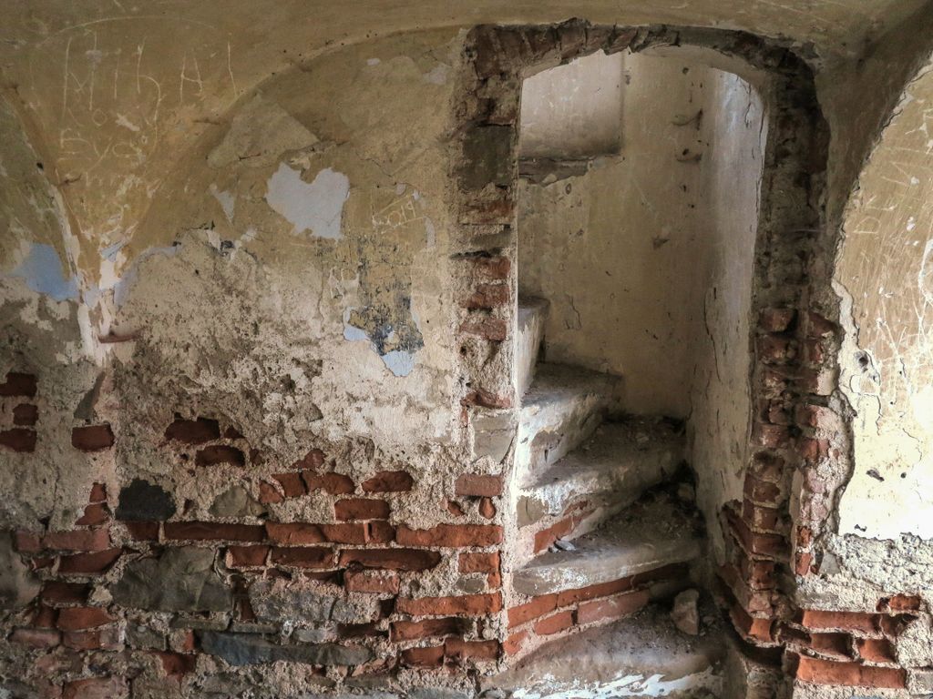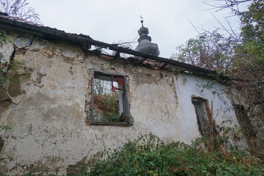 Din fața turnului bisericii pare că dincolo de acesta nu mai există și altceva, însă, după ce urci cele câteva trepte ale coridorului foarte îngust care te duc la primul etaj, se mai pot vedea, chiar și în ciuda vegetației abundente, vechile încăperi. Sau, mai bine zis, ce a mai rămas din acestea. Și chiar dacă, strecurându-te prin acea vegetație deasă, poți ajungi în interiorul încăperilor, și îți poți da seama destul de ușor de cum arătau acestea, în privința lor nu se mai poate face nimic. Nepăsarea și-a spus, deja, cuvântul. Tot ceea ce mai e încă în picioare stă să cadă.