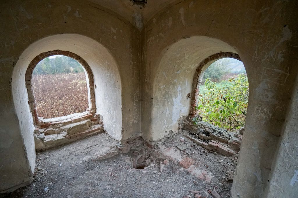 Dincolo de poartă, golul lăsat în urma celor care au furat tot ceea ce se putea fura (aproape tot) e dezolant, doar fântâna franceză și biserica rămânând în picioare, mărturii tăcute ale măreției de odinioară și, în același timp, al indiferenței oamenilor față de reperele arhitecturale ale istoriei locurilor ăstora.