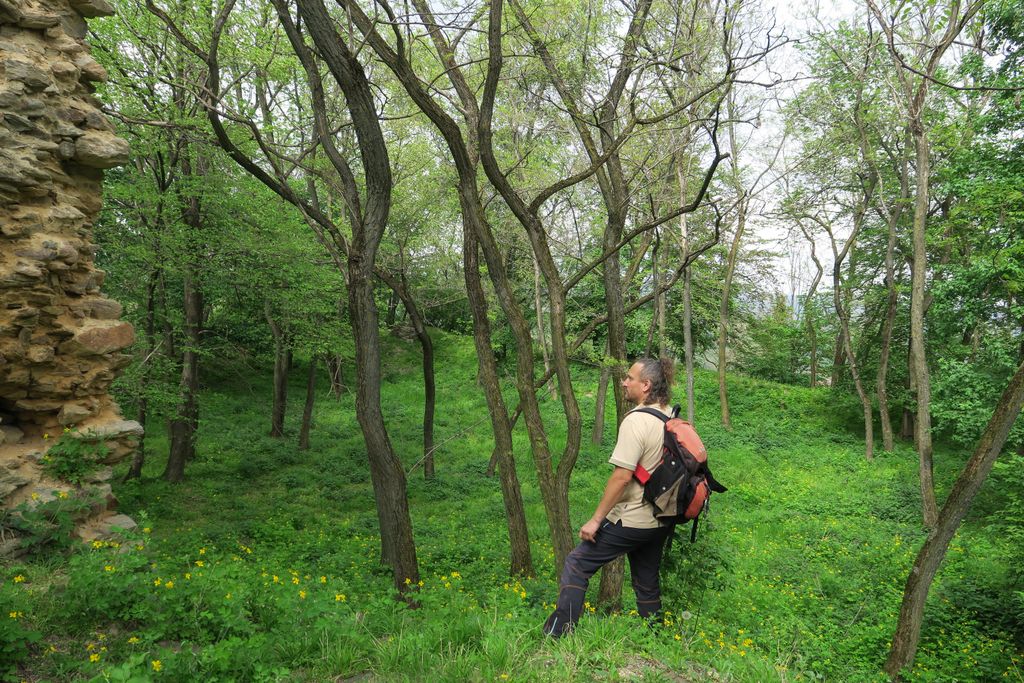 Lumină din lumina verde a naturii, sus, pe culmea stâncoasă, la cetatea Valcău