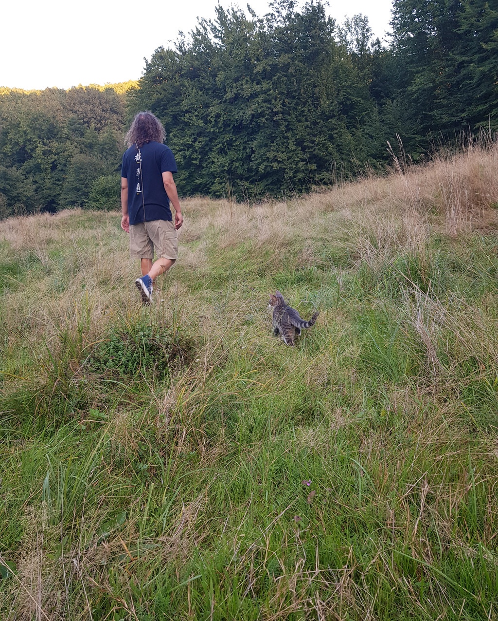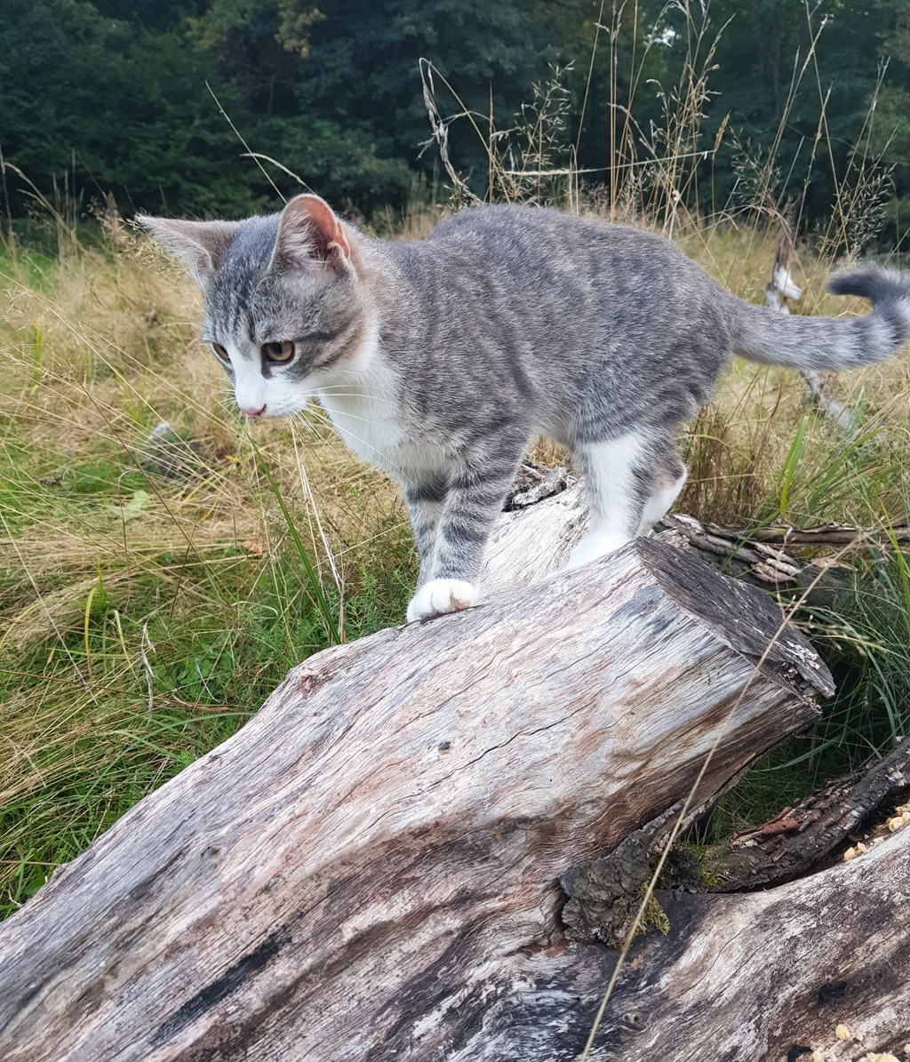 Azi am ieșit cu pisicuța mea atomică, Fly, în pădure, pe o pășune. E prima oară când o scot afară, în cele 3 luni și un pic de viață. De două luni și un pic e nelipsită de lângă mine, după ce a sărit, de disperare, de pe acoperișul prefecturii din Zalău. Cum a ajuns acolo un boț cu ochi, de vreo 100 de grame și mică cât un pumn de copil, nu știu. Dar de acolo, luându-și zborul, a ajuns la mine.