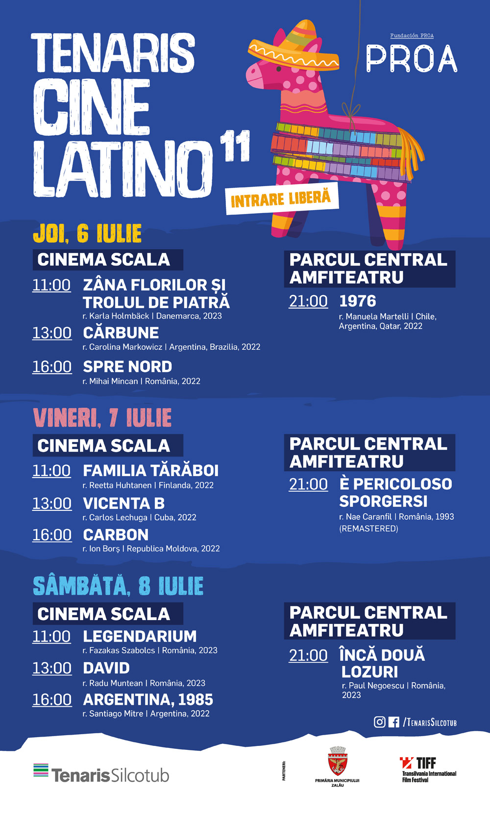 Festivalul Tenaris Cinelatino aduce la Zalău, între 6 și 8 iulie, trei zile de proiecții cu intrare liberă, cu cea mai variată selecție de filme din ultimii zece ani: producții din 7 țări, printre care Argentina, Cuba, România și Republica Moldova.